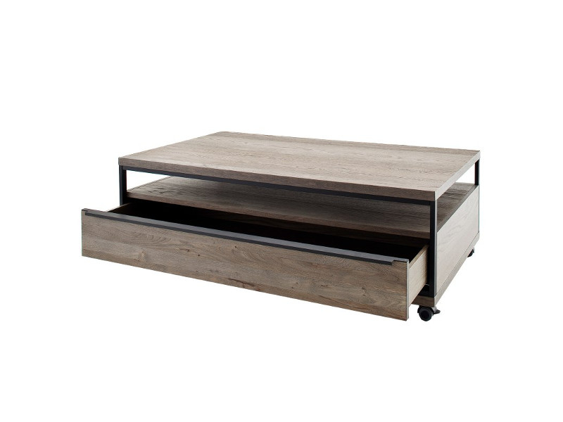 Couchtisch Avignion zeigt sich in einem modernen und geradlinigen Design. Das graue Holz der Asteiche verleiht dem Tisch ein einmaliges Aussehen. Besonders geräumig machen ihn der große Schubkasten und die Ablage.