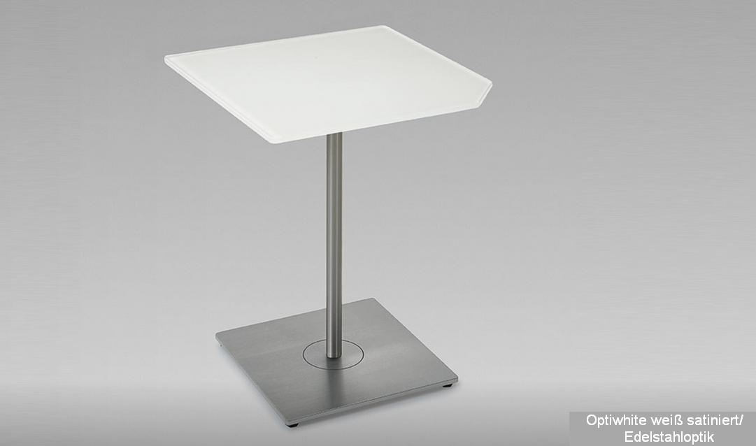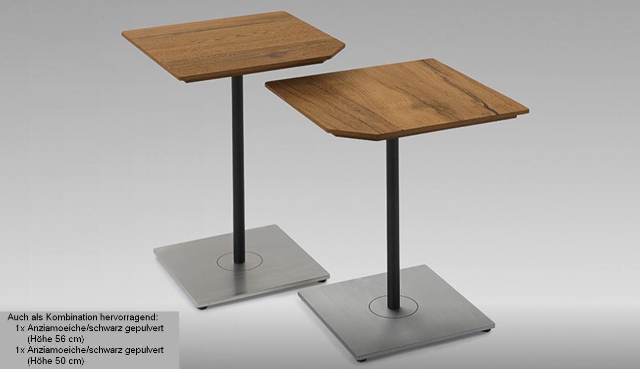 Die Kombination aus stilsicherem Gestell in Edelstahl und Edelstahloptik oder schwarz gepulvertem Metall harmoniert mit der auffälligen, fünfeckigen Tischplatte, die Sie nach Ihren Wünschen wählen können; ob Sie lieber die schönen Töne der außergewöhnlichen Hölzer bevorzugen oder die besonders pflegeleichten Glasplatten wählen, für jede Einrichtung ist genau das passende dabei.